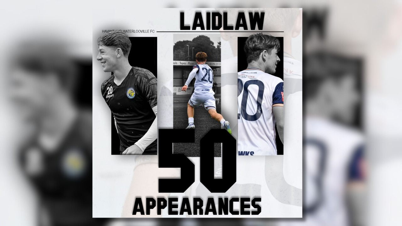 Harvey Laidlaw notched his 50th appearance for the Hawks colours in our FA Trophy win over Tiverton Town on Saturday.
