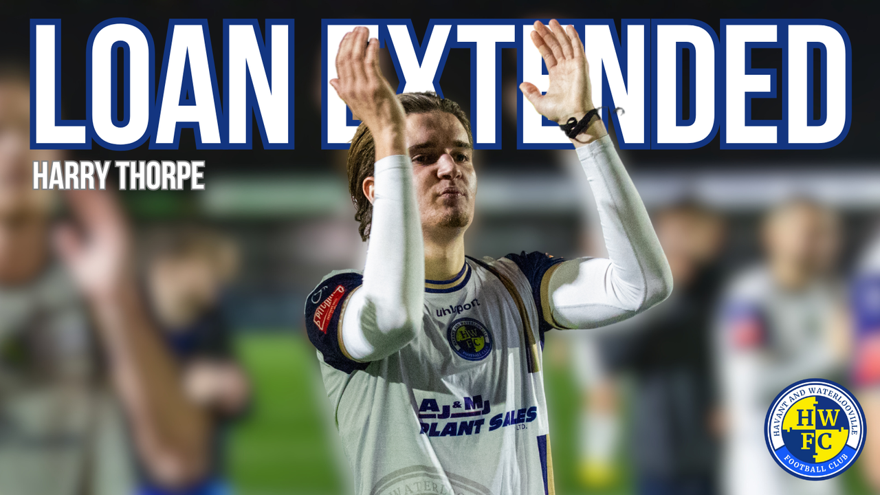 Havant and Waterlooville Football Club is delighted to announce that Harry Thorpe’s loan from Enterprise National League side Aldershot Town has been extended for a further 28-days!
